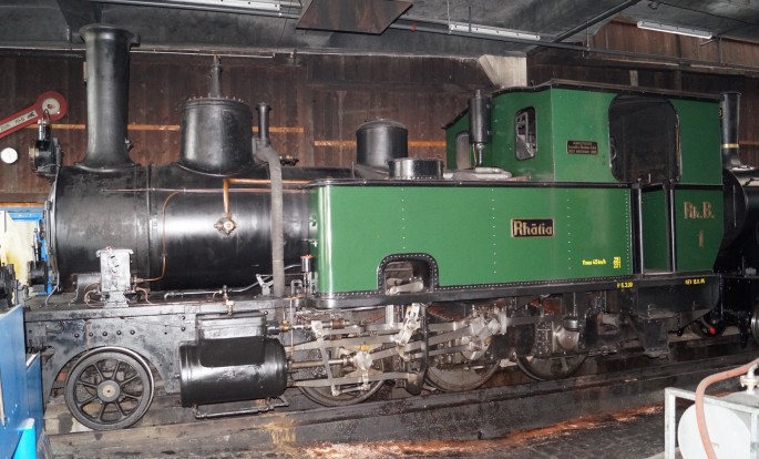 Das Bild zeigt die "Rhätia" im Lokschuppen der RhB in Landquart im Jahr 2017, copyright J.Franke