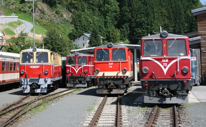 Die 2095.04 und die Schweseterlokomotive Vs 71 (ex. 2095.01) mit dem Jubiläumswagen. (copyright Thomas Oberkalmsteiner/PLB)